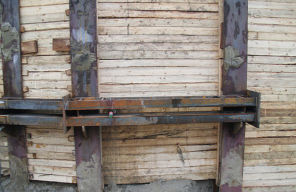 Die Ausfachung ist aus Holz, Beton oder Stahl, je nach Anspruch. Mit dem Einbau der Ausfachung muss man mind. ab einem Aushub von 1,25 m beginnen. Für einen kraftschlüssigen Anschluß zwischen Erdreich u. Träger, müssen die Hohlräume mit Sand, Magerbeton oder Kies verfüllt werden. Die Ausfachung muss am Erdreich anliegen; dies erreicht man durch Ankeilen der Verbohlung. Der Einbau der weiteren Verbohlung darf hinter dem Aushub in der Regel nicht mehr als 50 cm betragen.
